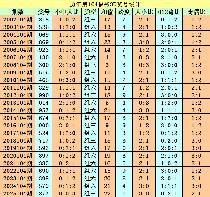 程成福彩3D第2026104期推选: